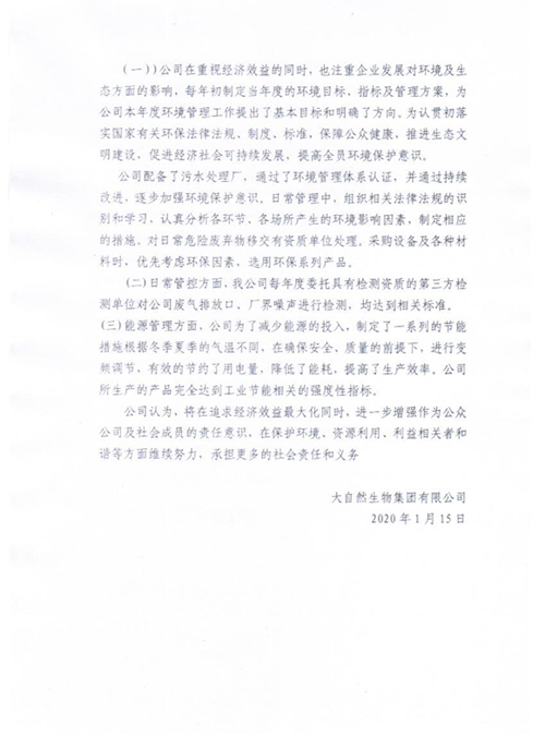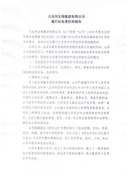 大自然生物集團有限公司履行社會責任的報告