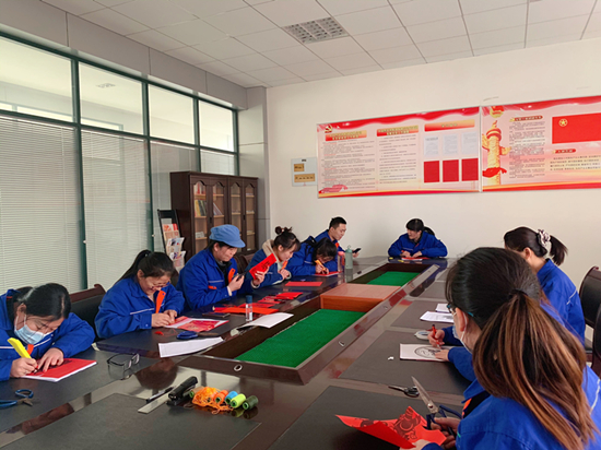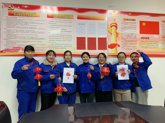 隨后,將制作花燈、剪紙的材料分發(fā)給大家,按照抖音中的制作教程進行講解,大家躍躍欲試,嚴謹?shù)倪M行裁剪,折疊,粘貼,三倆人一起合作,不一會兒,幾個紅包,在默契配合下,被制作成一只只鮮紅喜慶、別樣精致的小花燈,各式各樣的剪紙作品。活動現(xiàn)場洋溢著熱鬧、溫馨的節(jié)日氛圍。